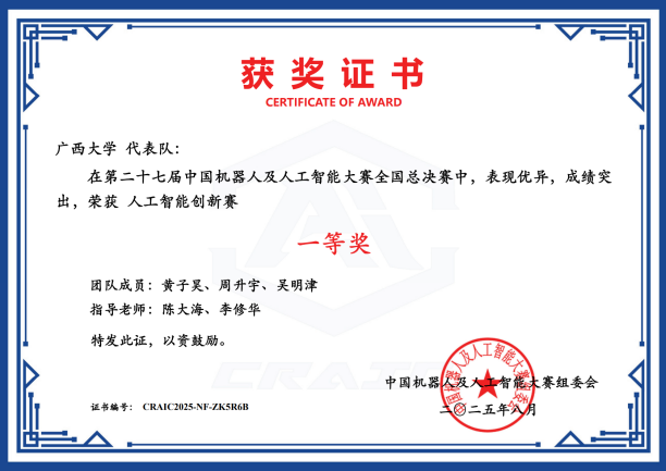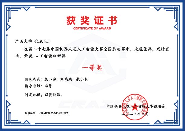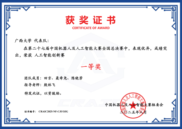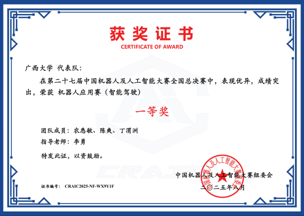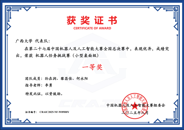 近日,第二十七届中国机器人及人工智能大赛落下帷幕,72779太阳集团游戏在本届比赛中荣获国家级奖项25项,其中一等奖6项、二等奖8项、三等奖11项;省级奖项53项,包括一等奖16项、二等奖21项、三等奖16项。此次大赛充分展现了学院在机器人及人工智能领域的实力与教学成果,是学院长期以来注重学科建设、创新实践与人才培养的集中体现,也为相关学科的持续发展与高水平人才培养注入了新动能。