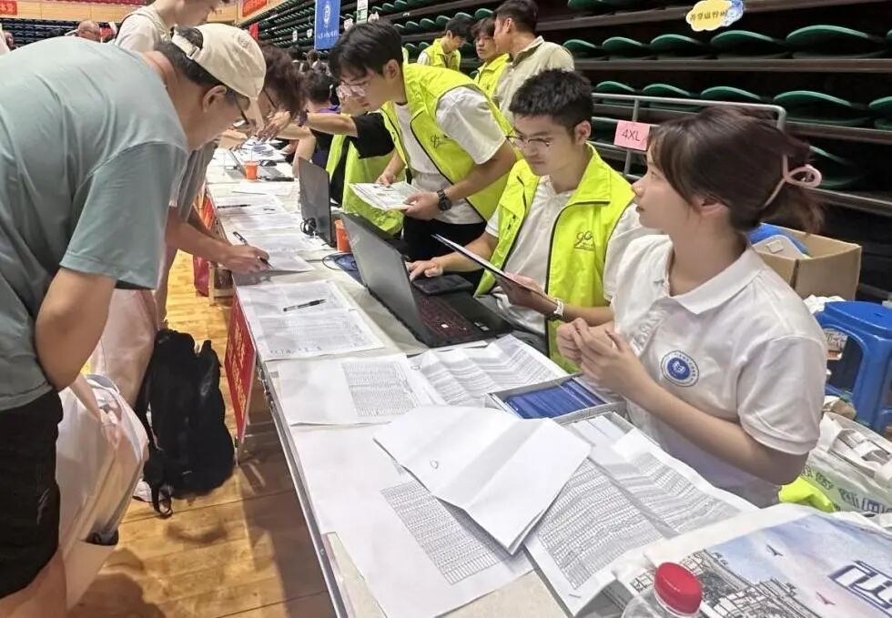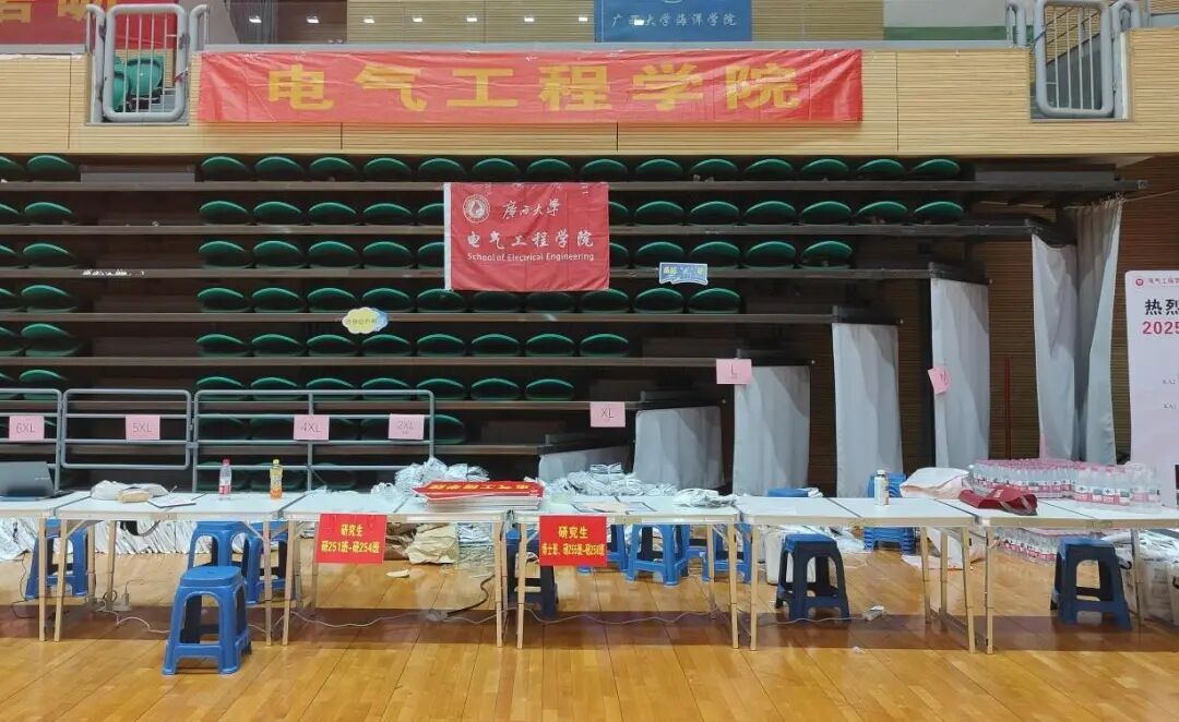 在新生领取校园卡与新生大礼包后,研会志愿者将引导新生前往院服发放专属区域,有序开展院服领取工作。志愿者提前将电气学院院服按尺码分类叠放,每类尺码旁清晰标注对应标识,方便快速查找。发放时,志愿者先确认新生信息,再询问新生所需尺码,随后从对应尺码堆中取出院服递至新生手中,若新生对尺码有调整需求,也会及时协助更换,确保每位新生都能领到合身的院服,让新生在接过院服的瞬间,感受到属于电气学院的专属归属感。